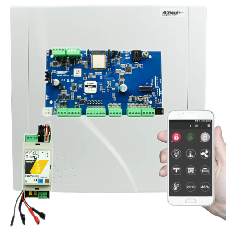 - obsługa aplikacji mobilnej: RopamNeo (Android/iOS), do nadzoru online oraz zdalnego sterowania