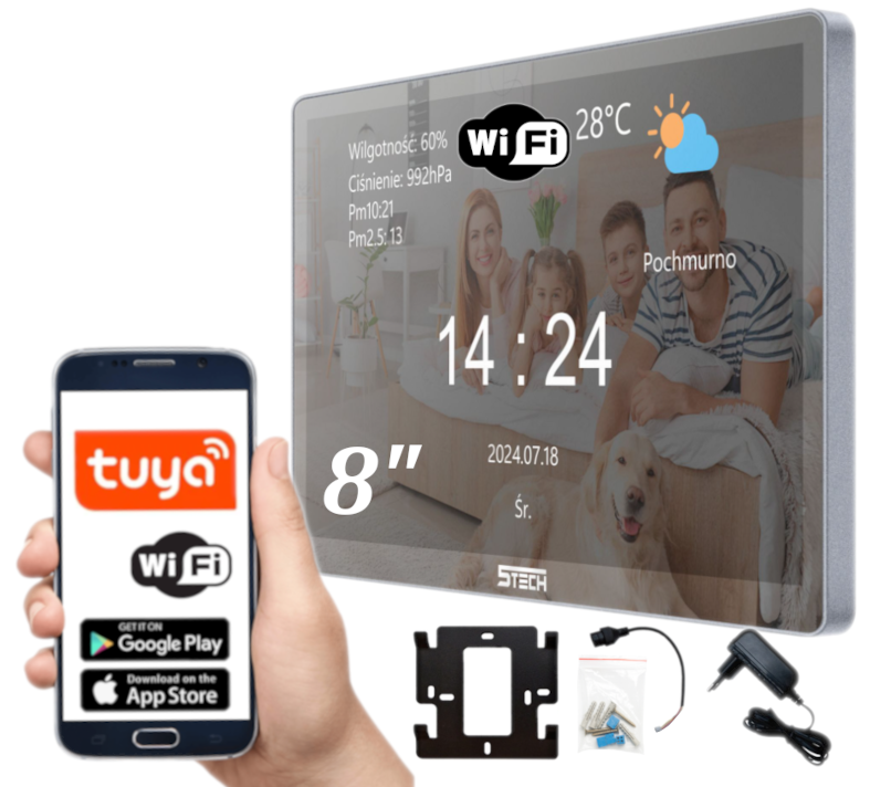 • 3 tryby gotowości: ekran wyłączony, pogoda, ramka cyfrowa