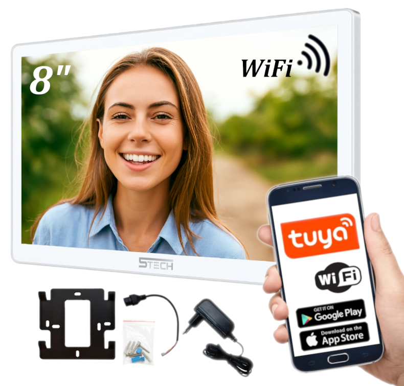 MONITOR WIDEODOMOFONOWY CYFROWY 5TECH Virgo One PLUS(W) 8" WiFi APLIKACJA 2-ŻYŁOWY