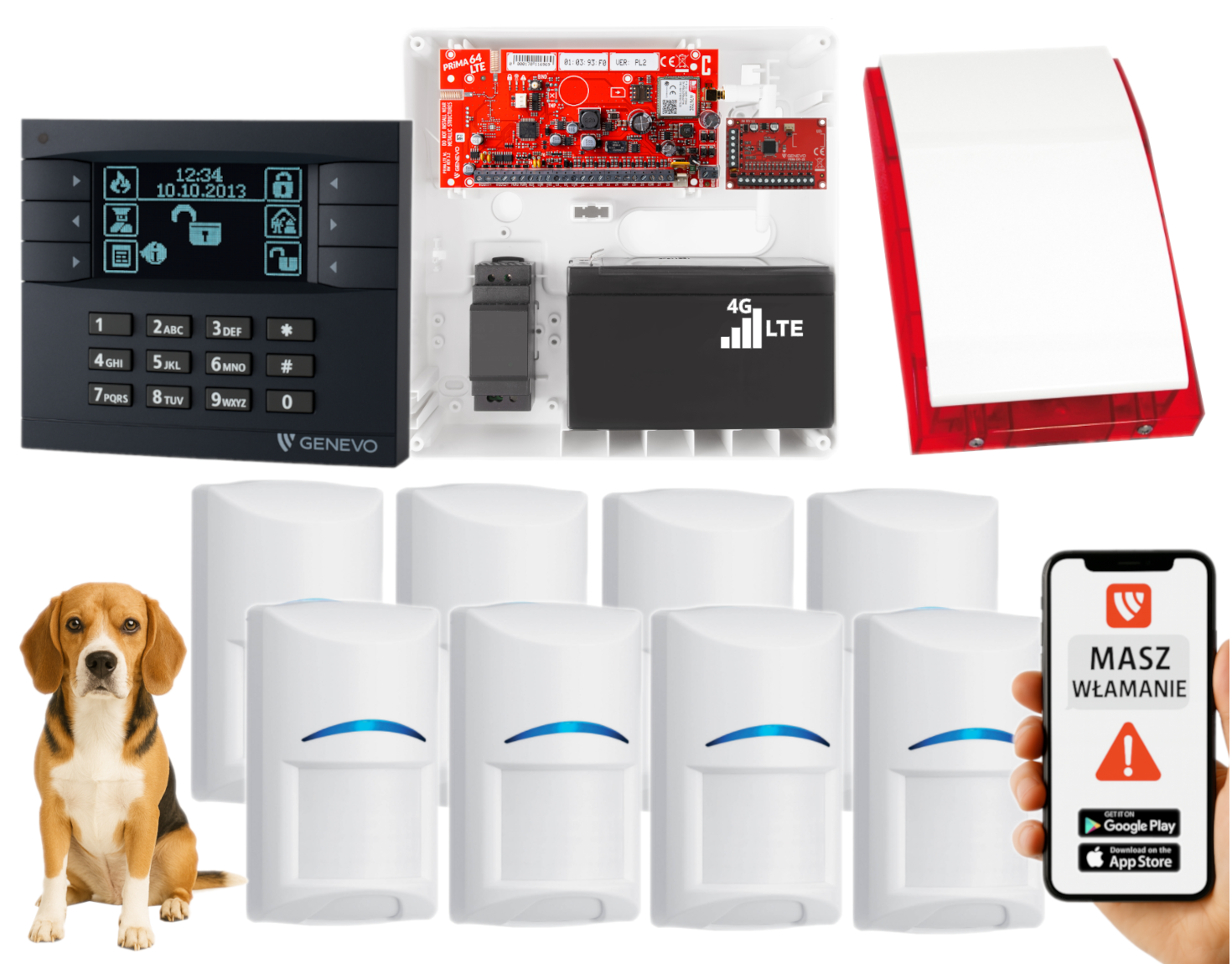 System alarmowy oparty na centrali Genevo PRiMA64LTE to nowoczesne, przewodowe rozwiązanie przeznaczone do ochrony obiektów prywatnych i komercyjnych. Dzięki połączeniu zaawansowanych funkcji z obsługą technologii