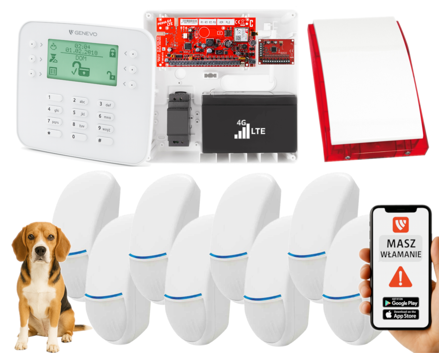 System alarmowy oparty na centrali Genevo PRiMA64LTE to nowoczesne, przewodowe rozwiązanie przeznaczone do ochrony obiektów prywatnych i komercyjnych. Dzięki połączeniu zaawansowanych funkcji z obsługą technologii