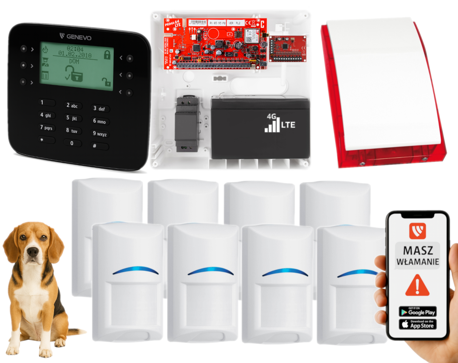 System alarmowy oparty na centrali Genevo PRiMA64LTE to nowoczesne, przewodowe rozwiązanie przeznaczone do ochrony obiektów prywatnych i komercyjnych. Dzięki połączeniu zaawansowanych funkcji z obsługą technologii