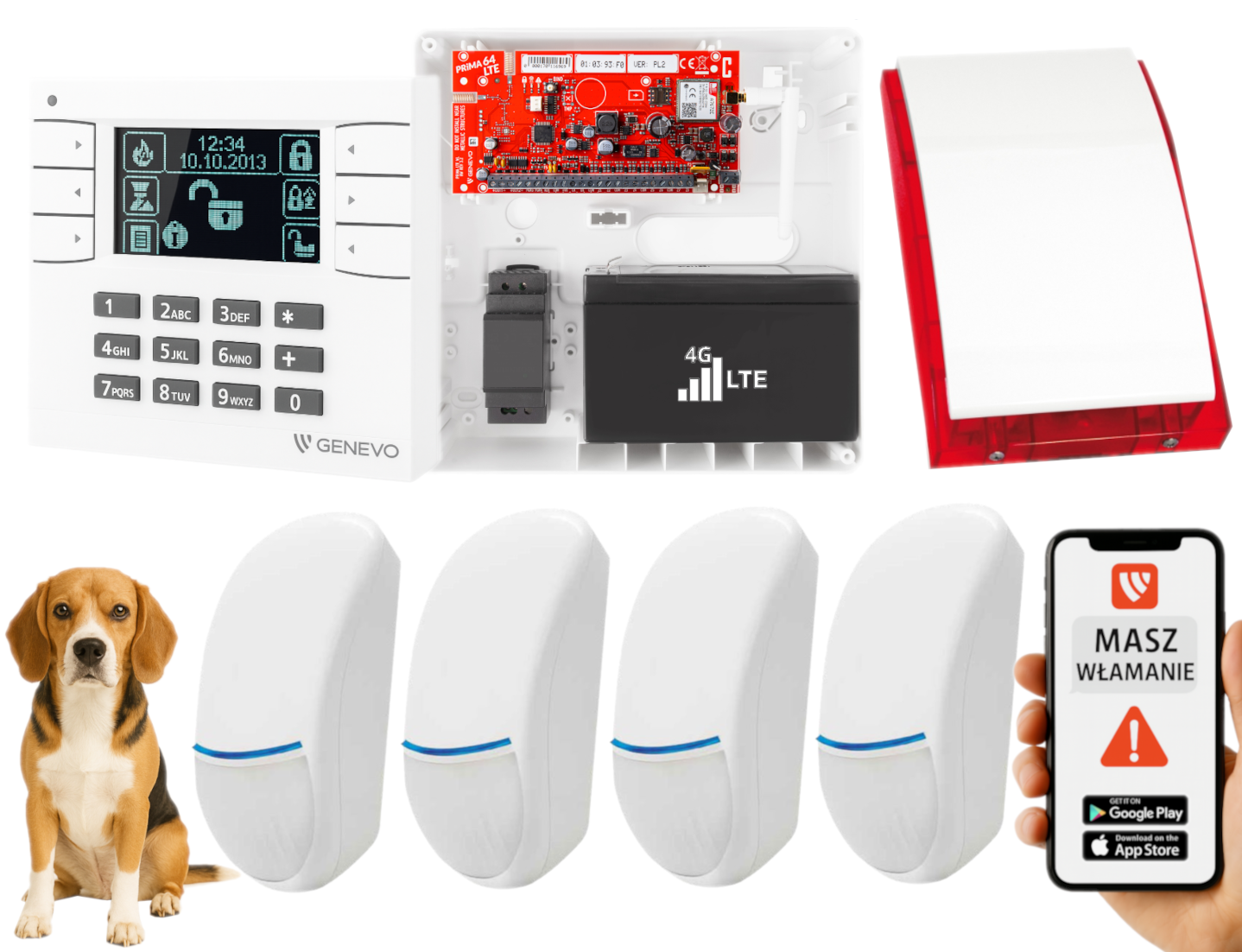 System alarmowy oparty na centrali Genevo PRiMA64LTE to nowoczesne, przewodowe rozwiązanie przeznaczone do ochrony obiektów prywatnych i komercyjnych. Dzięki połączeniu zaawansowanych funkcji z obsługą technologii