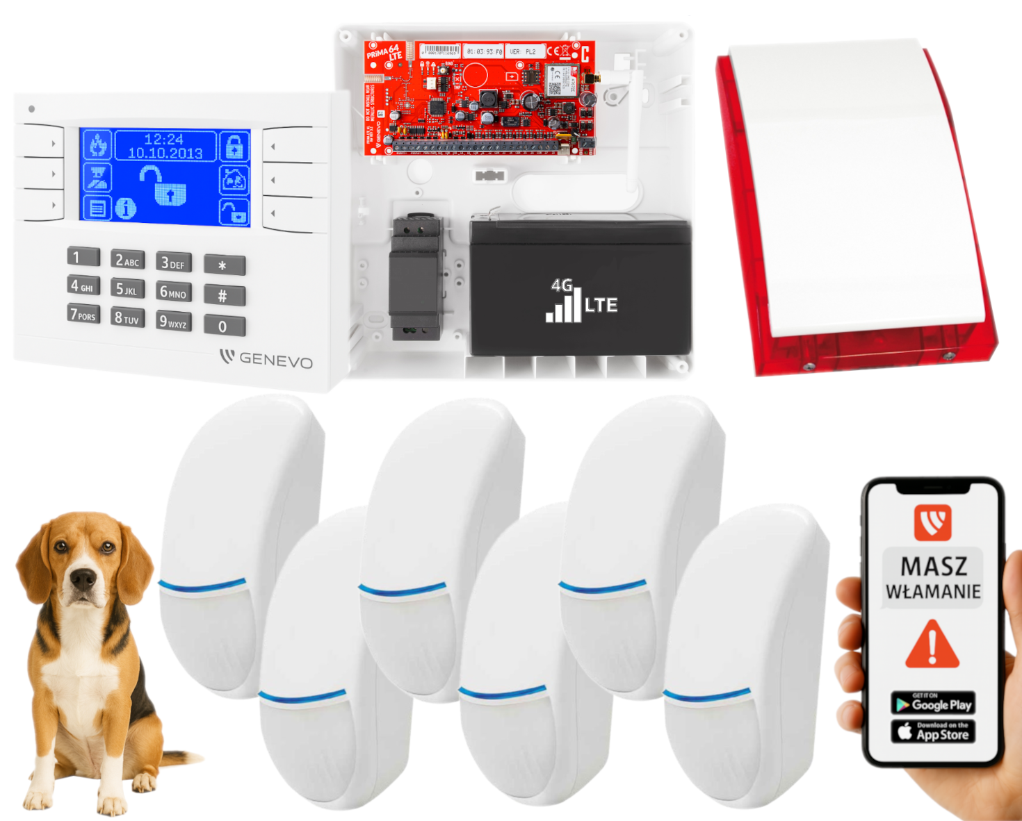 System alarmowy oparty na centrali Genevo PRiMA64LTE to nowoczesne, przewodowe rozwiązanie przeznaczone do ochrony obiektów prywatnych i komercyjnych. Dzięki połączeniu zaawansowanych funkcji z obsługą technologii