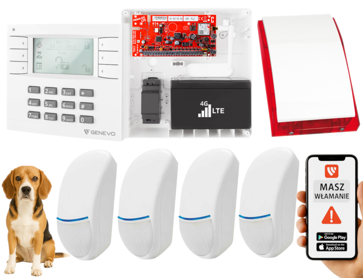 System alarmowy oparty na centrali Genevo PRiMA64LTE to nowoczesne, przewodowe rozwiązanie przeznaczone do ochrony obiektów prywatnych i komercyjnych. Dzięki połączeniu zaawansowanych funkcji z obsługą technologii