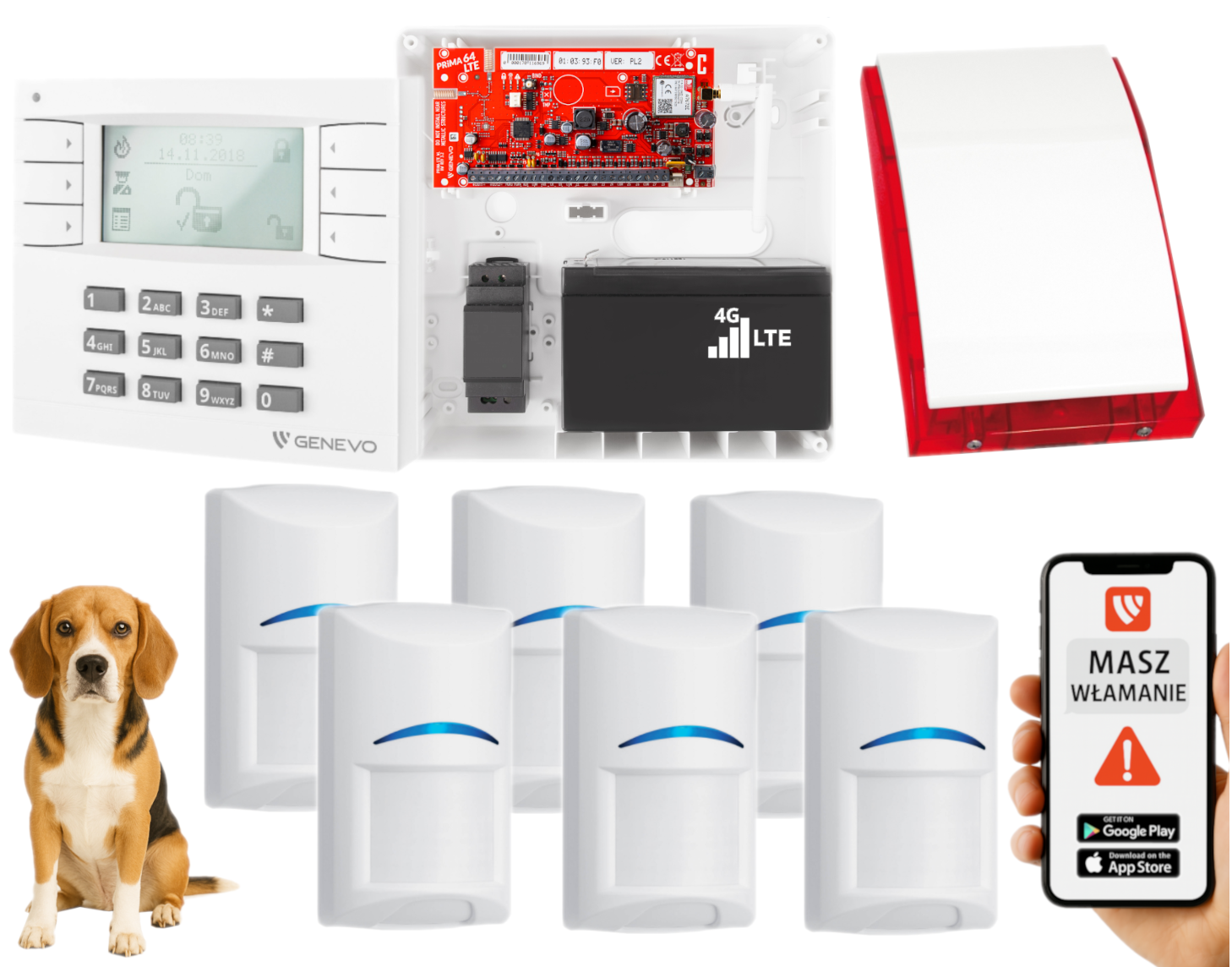 System alarmowy oparty na centrali Genevo PRiMA64LTE to nowoczesne, przewodowe rozwiązanie przeznaczone do ochrony obiektów prywatnych i komercyjnych. Dzięki połączeniu zaawansowanych funkcji z obsługą technologii
