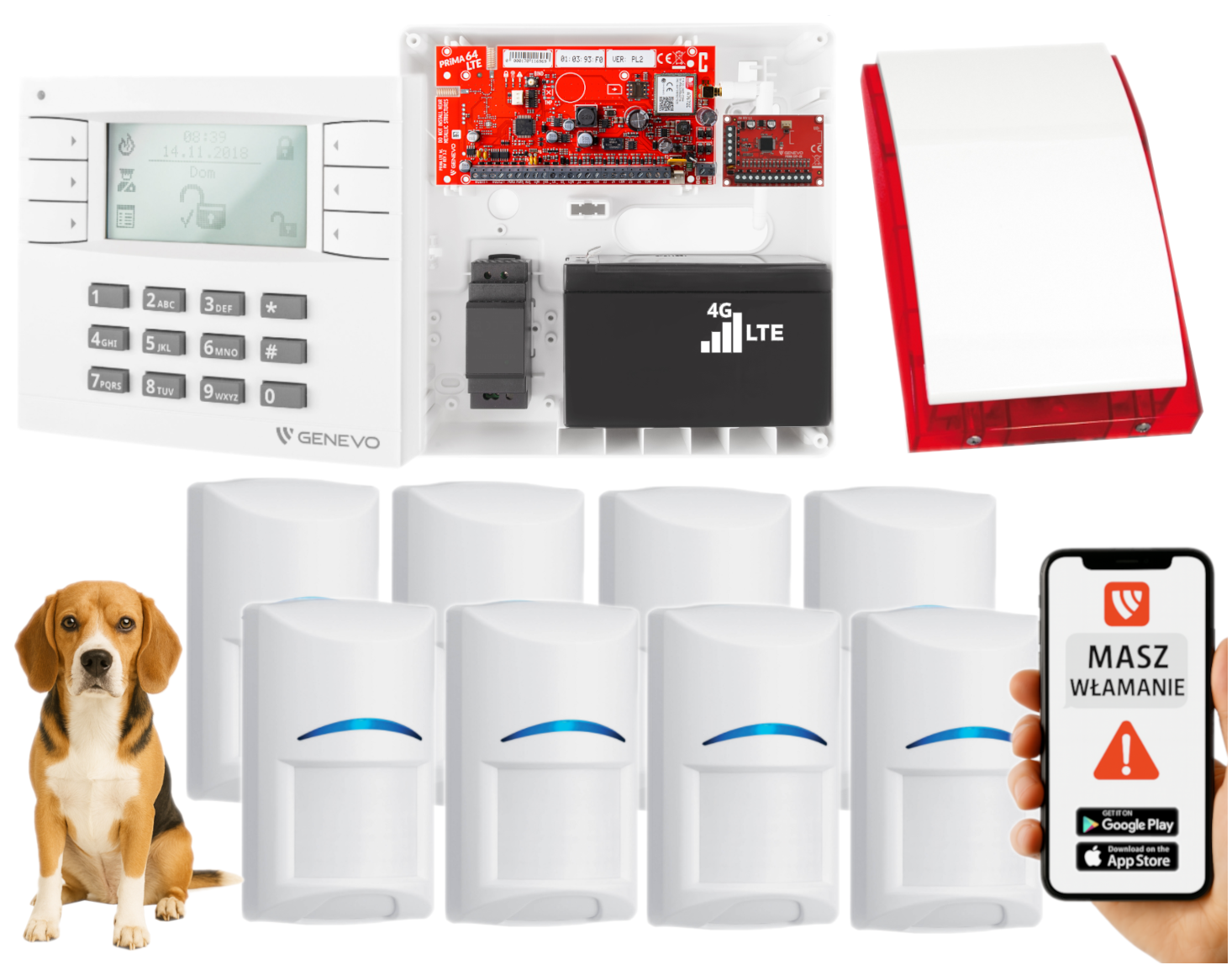 System alarmowy oparty na centrali Genevo PRiMA64LTE to nowoczesne, przewodowe rozwiązanie przeznaczone do ochrony obiektów prywatnych i komercyjnych. Dzięki połączeniu zaawansowanych funkcji z obsługą technologii
