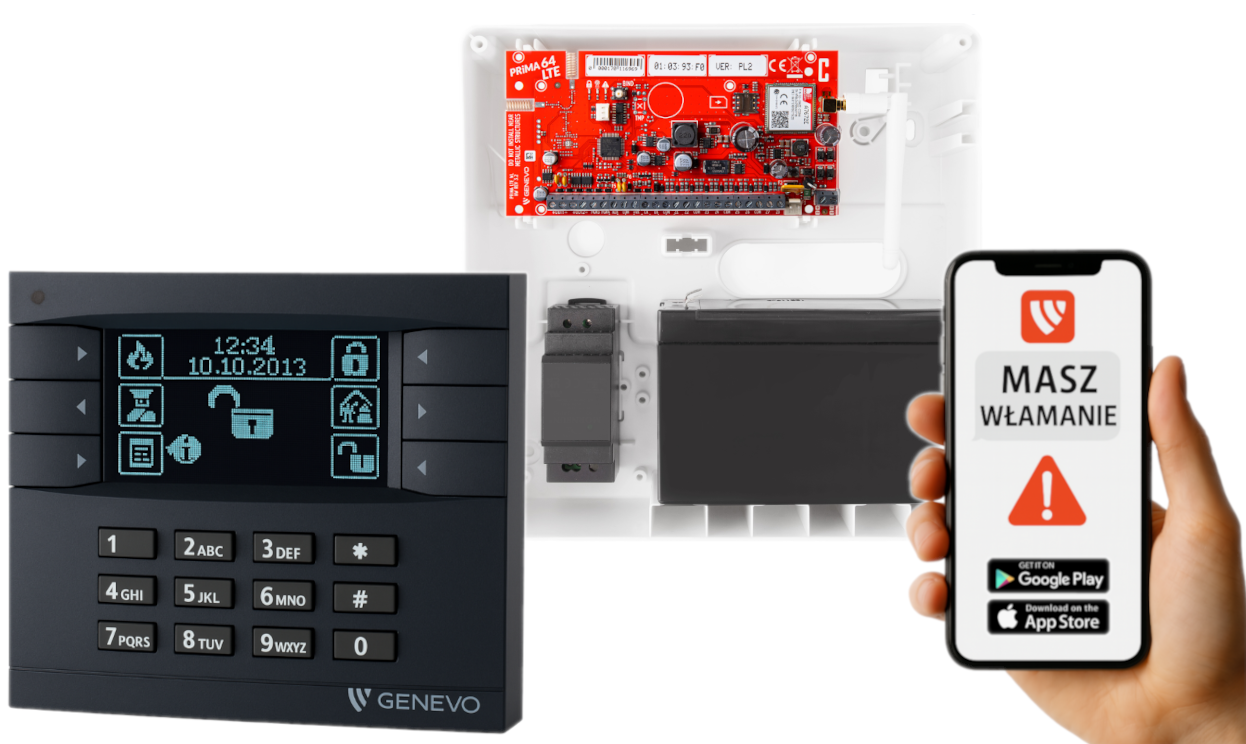 System alarmowy oparty na centrali Genevo PRiMA64LTE to nowoczesne, przewodowe rozwiązanie przeznaczone do ochrony obiektów prywatnych i komercyjnych. Dzięki połączeniu zaawansowanych funkcji z obsługą technologii