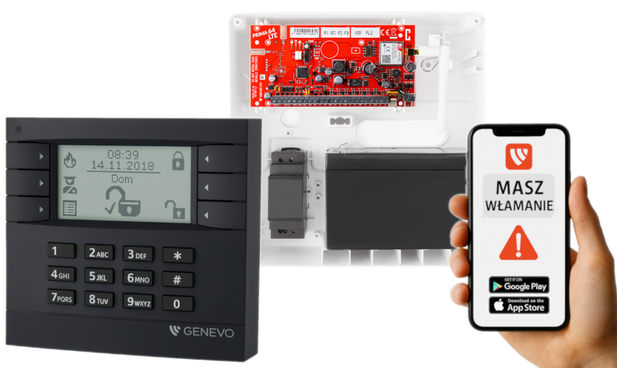 Genevo PRiMA64LTE to nowoczesna centrala alarmowa, łącząca zaawansowane funkcje przewodowe z obsługą technologii