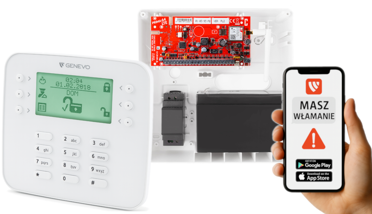 Genevo PRiMA64LTE to nowoczesna centrala alarmowa, łącząca zaawansowane funkcje przewodowe z obsługą technologii