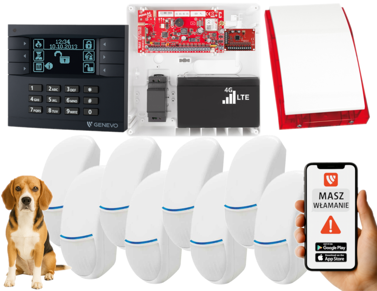 System alarmowy oparty na centrali Genevo PRiMA64LTE WL to nowoczesne, hybrydowe rozwiązanie przeznaczone do ochrony obiektów prywatnych i komercyjnych. Dzięki połączeniu zaawansowanych funkcji przewodowych z obsługą technologii