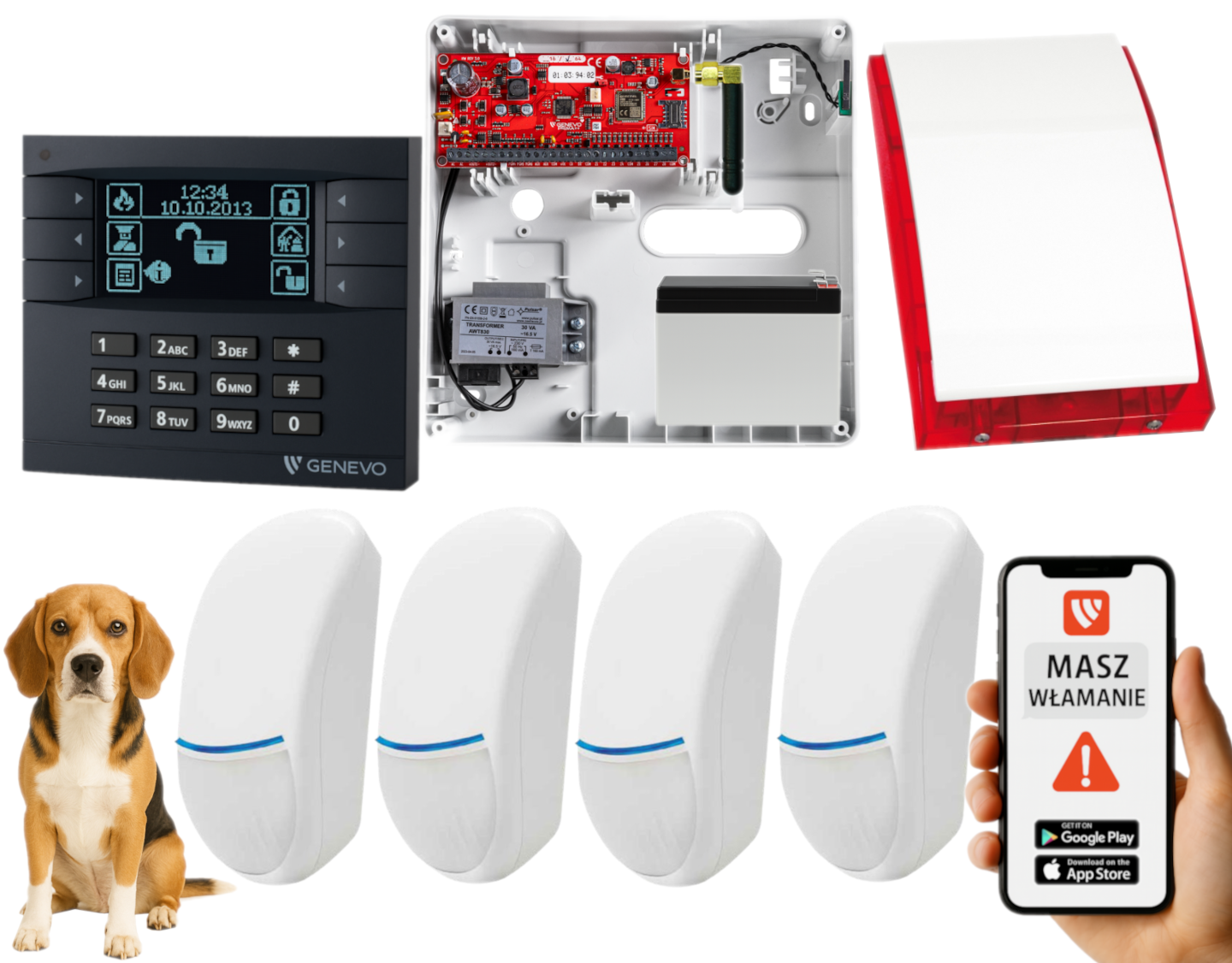 System alarmowy oparty na centrali Genevo PRiMA64Q to nowoczesne, przewodowe rozwiązanie przeznaczone do ochrony obiektów prywatnych i komercyjnych. Został zaprojektowany z myślą o efektywnym zabezpieczaniu oraz szybkim sygnalizowaniu włamań i napadów w domach, mieszkaniach, sklepach czy punktach usługowych.