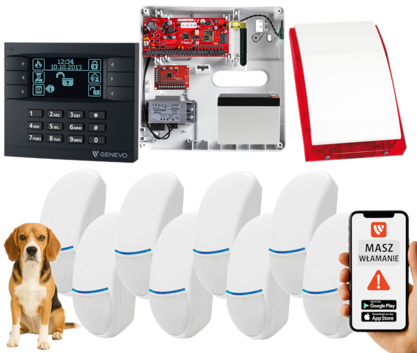 - 8x czujka wewnętrzna przewodowa BINGO Plus (odporna na zwierzęta do 15 kg);