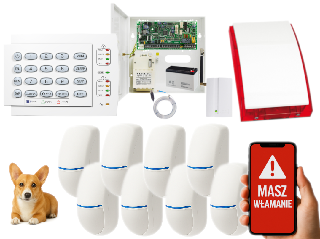rozbudować o dodatkowe kontaktrony (czujniki otwarcia okien, drzwi),