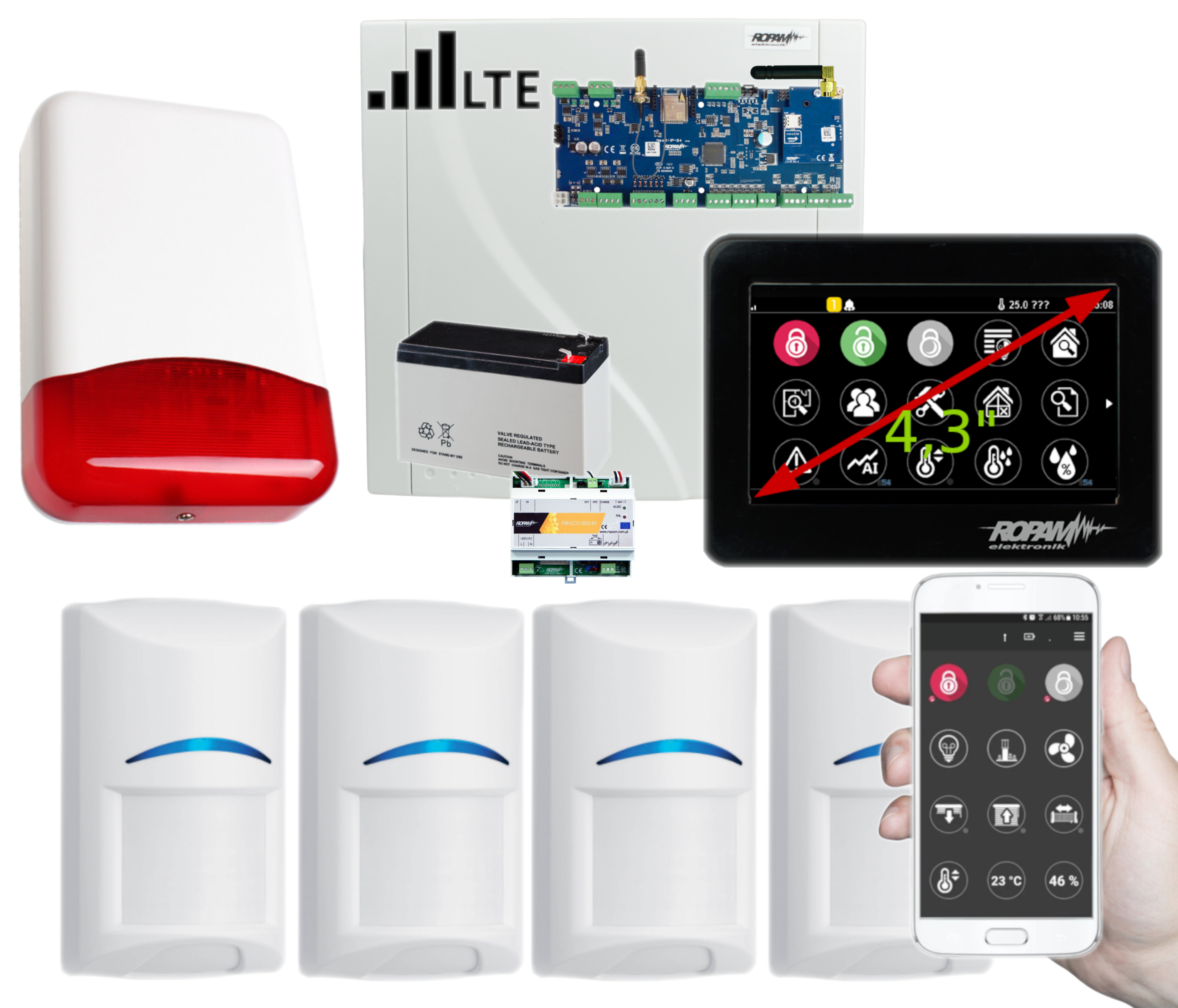 ✨ Dzięki wbudowanemu komunikatorowi GSM, modemowi LTE i modułowi WiFi, zapewnia pełną kontrolę lokalnie i zdalnie, a obsługa z poziomu smartfonu z zainstalowaną aplikacją RopamNeo sprawia, że zarządzanie systemem jest intuicyjne i szybkie.