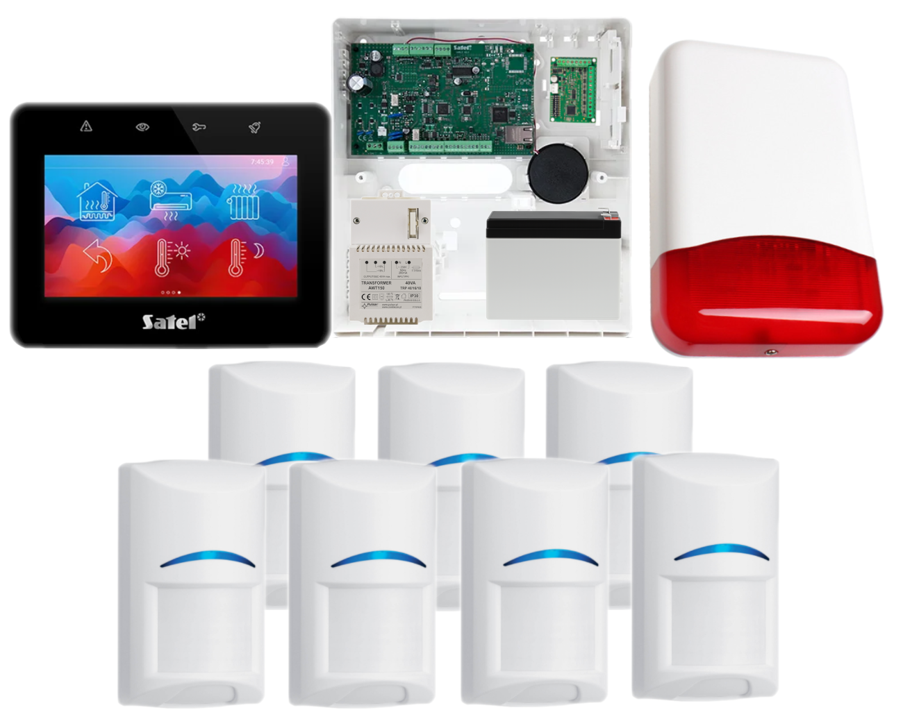 - 1x centrala alarmowa Satel Versa IP z akcesoriami;