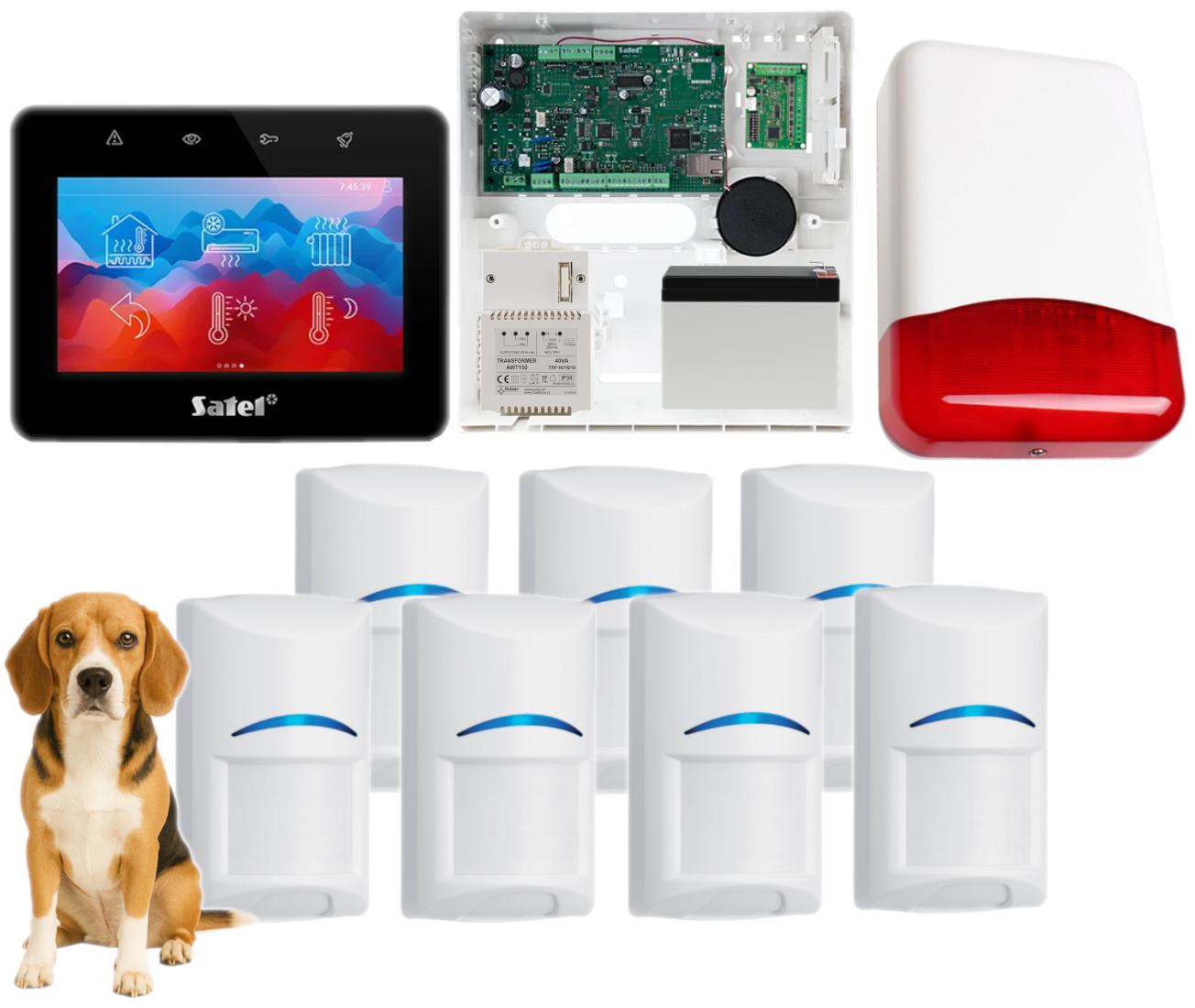 - 7x przewodowa, wewnętrzna czujka Bosch Gen2 ISC-BPR2-WP12 (odporne na zwierzęta o wadze do 20kg);