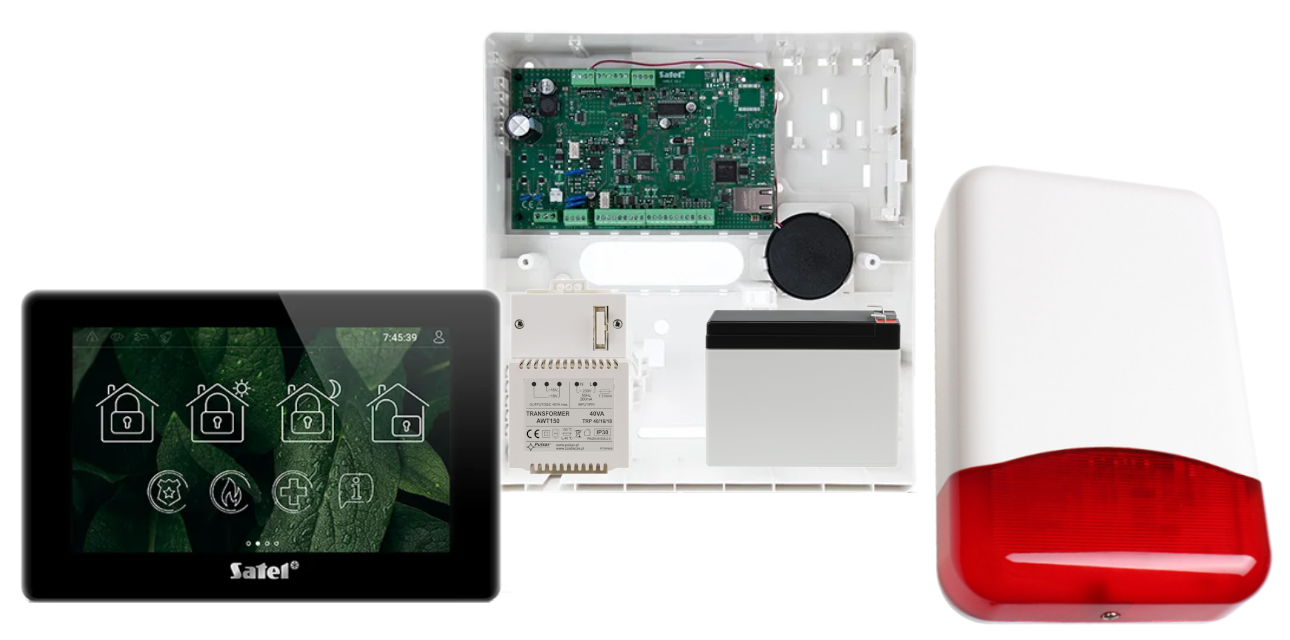 - 1x centrala alarmowa Satel Versa IP z akcesoriami;