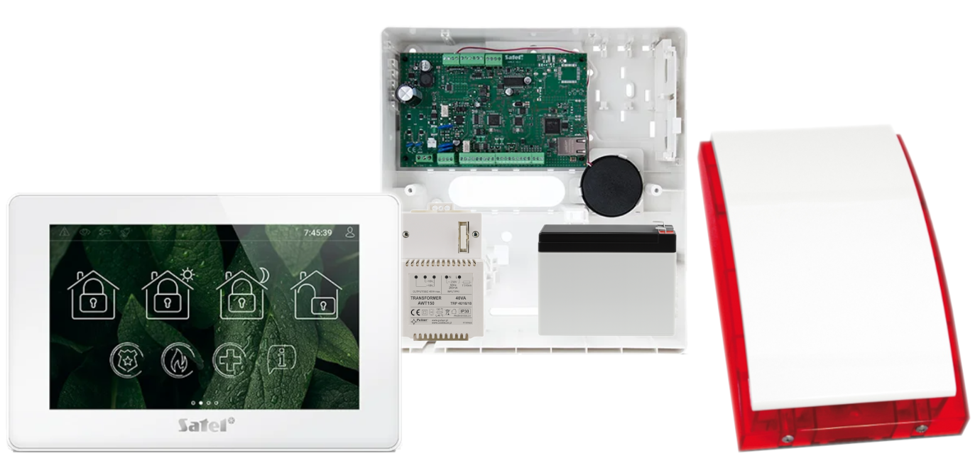 - 1x centrala alarmowa Satel Versa IP z akcesoriami;