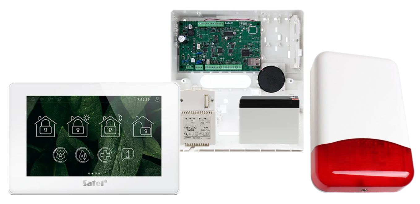 - 1x centrala alarmowa Satel Versa IP z akcesoriami;