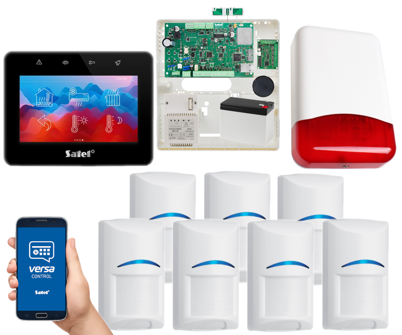 - 1x centrala alarmowa Satel Versa Plus LTE z akcesoriami;