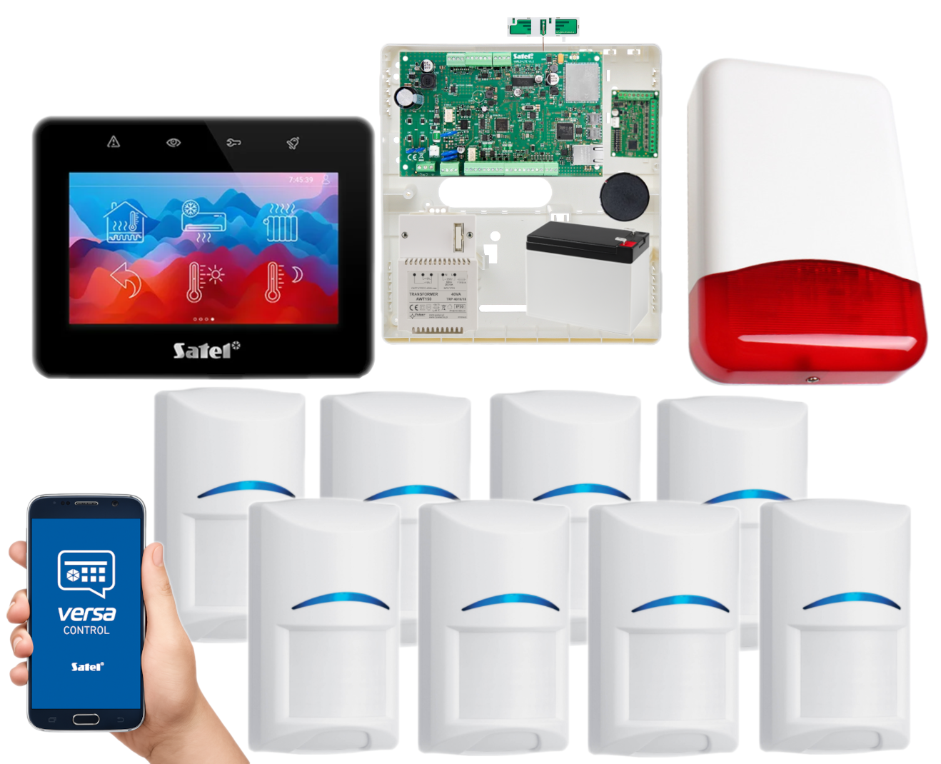 - 1x centrala alarmowa Satel Versa Plus LTE z akcesoriami;