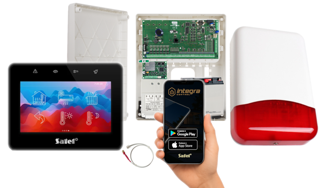 - 1x centrala alarmowa Satel INTEGRA 128 wraz z akcesoriami;