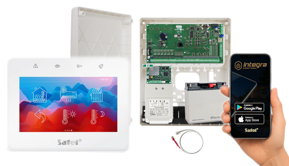 - 1x centrala alarmowa Satel INTEGRA 128 wraz z akcesoriami;