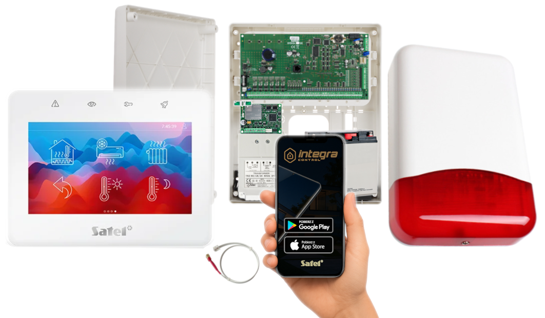 - 1x centrala alarmowa Satel INTEGRA 128 wraz z akcesoriami;