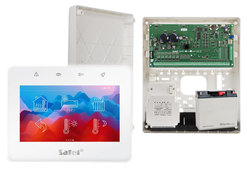 - 1x centrala alarmowa Satel INTEGRA 128 Plus wraz z akcesoriami;