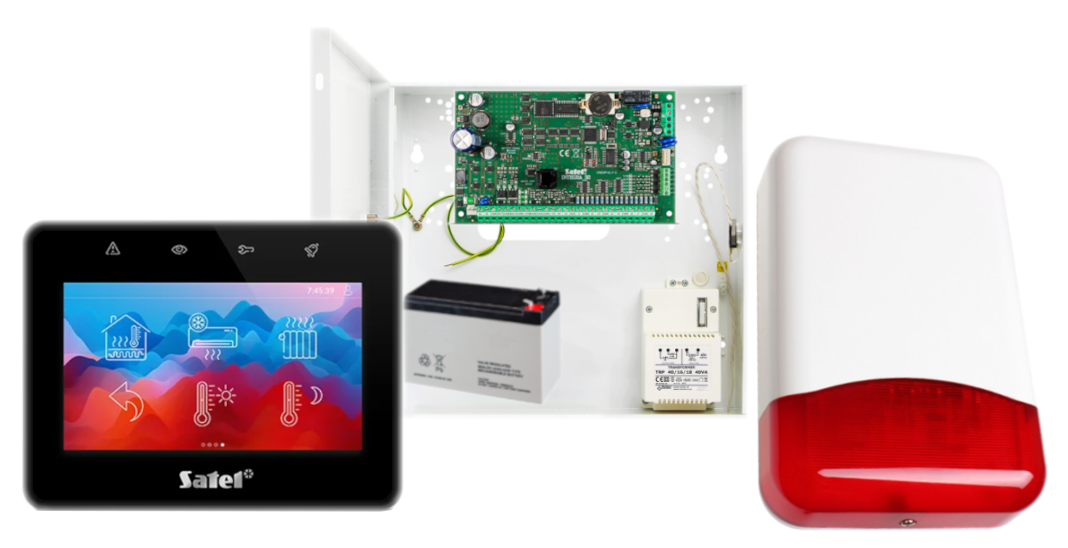 - 1x centrala alarmowa Satel INTEGRA 32 wraz z akcesoriami;