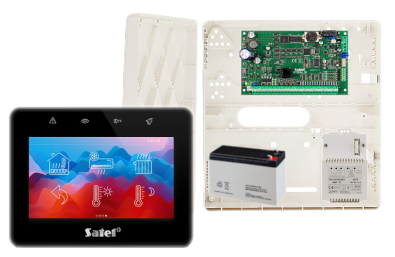 - 1x centrala alarmowa Satel INTEGRA 32 wraz z akcesoriami;