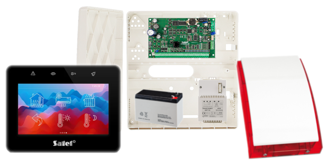 - 1x centrala alarmowa Satel INTEGRA 32 wraz z akcesoriami;