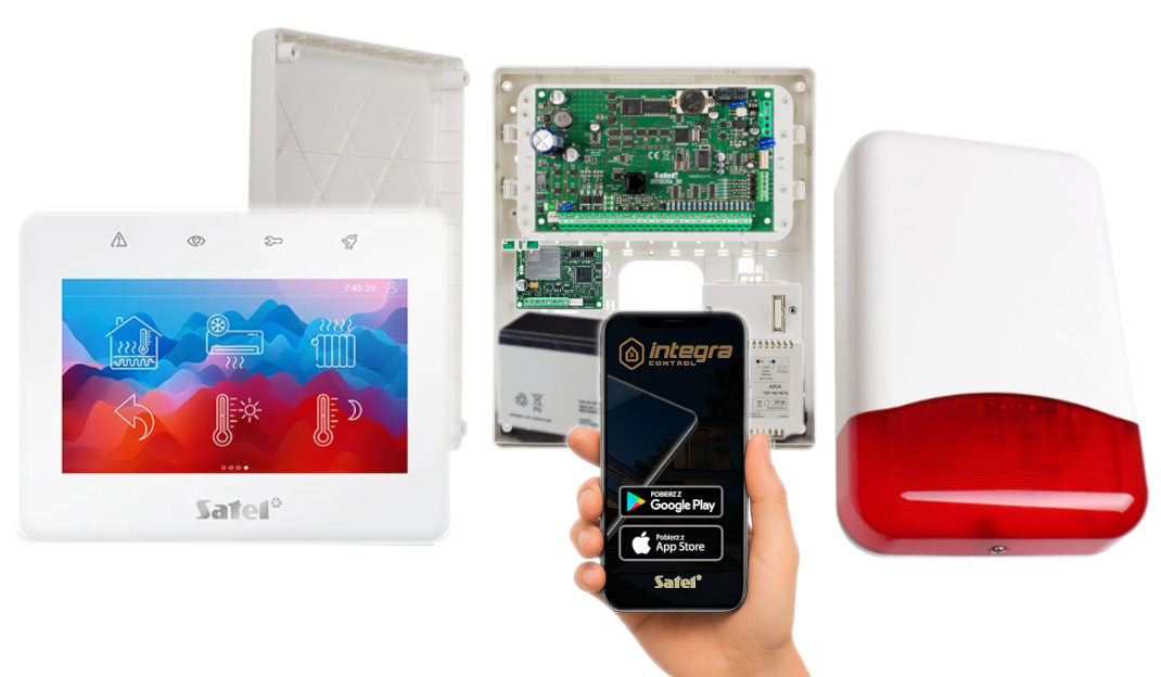 - 1x centrala alarmowa Satel INTEGRA 32 wraz z akcesoriami;
