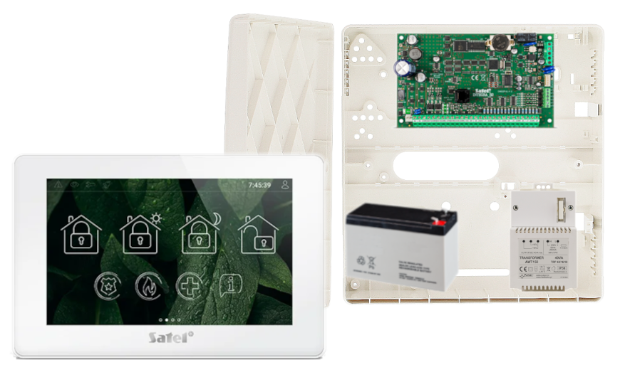 - 1x centrala alarmowa Satel INTEGRA 32 wraz z akcesoriami;