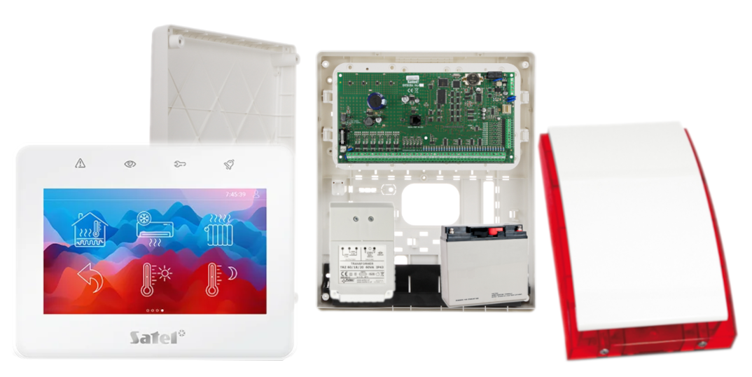 - 1x centrala alarmowa Satel INTEGRA 64 wraz z akcesoriami;