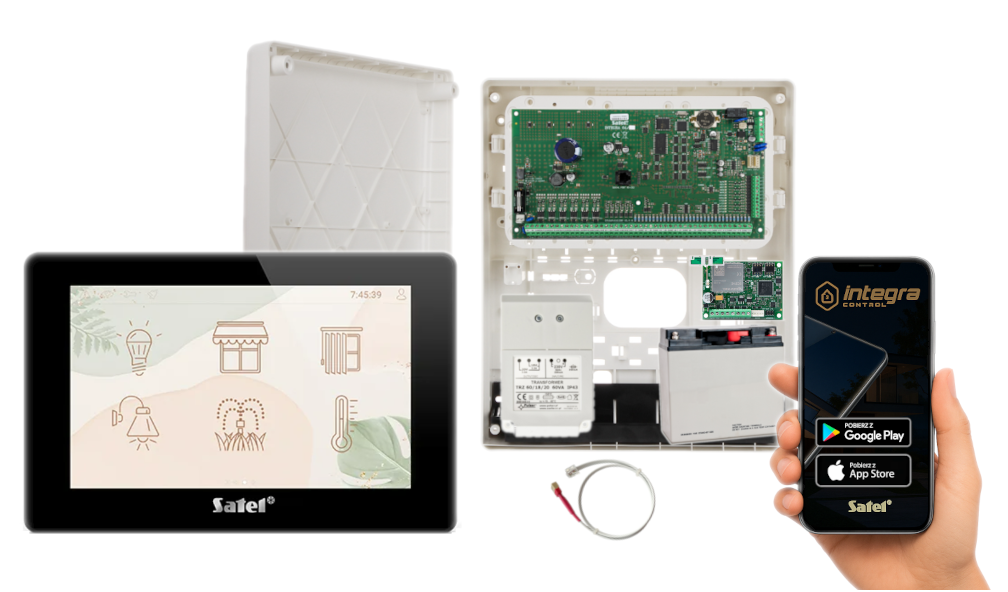 - 1x centrala alarmowa Satel INTEGRA 64 wraz z akcesoriami;