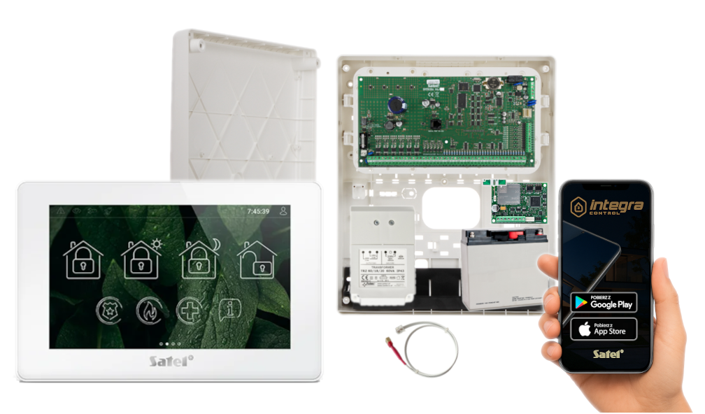 - 1x centrala alarmowa Satel INTEGRA 64 wraz z akcesoriami;