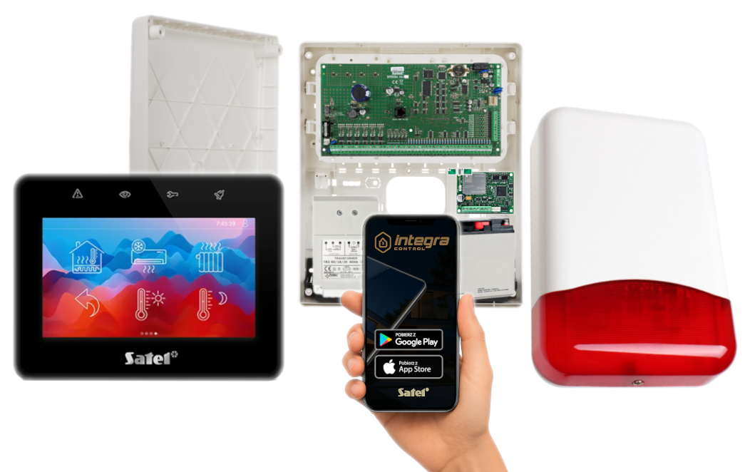 - 1x centrala alarmowa Satel INTEGRA 64 wraz z akcesoriami;