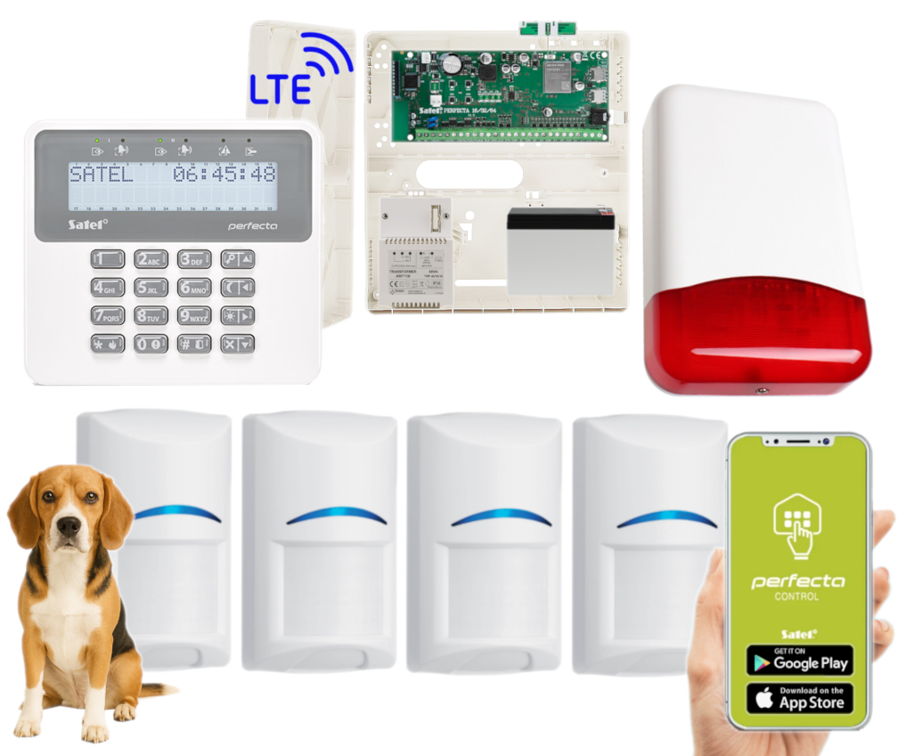 - 1x centrala alarmowa Satel Perfecta 16 LTE wraz z akcesoriami;