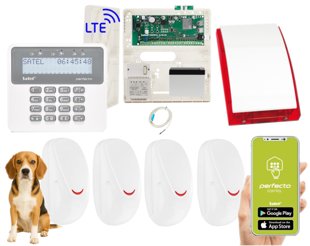 - 1x centrala alarmowa Satel Perfecta 16 LTE wraz z akcesoriami;