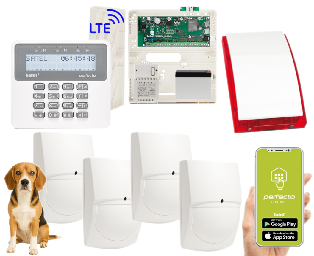 - 1x centrala alarmowa Satel Perfecta 16 LTE wraz z akcesoriami;