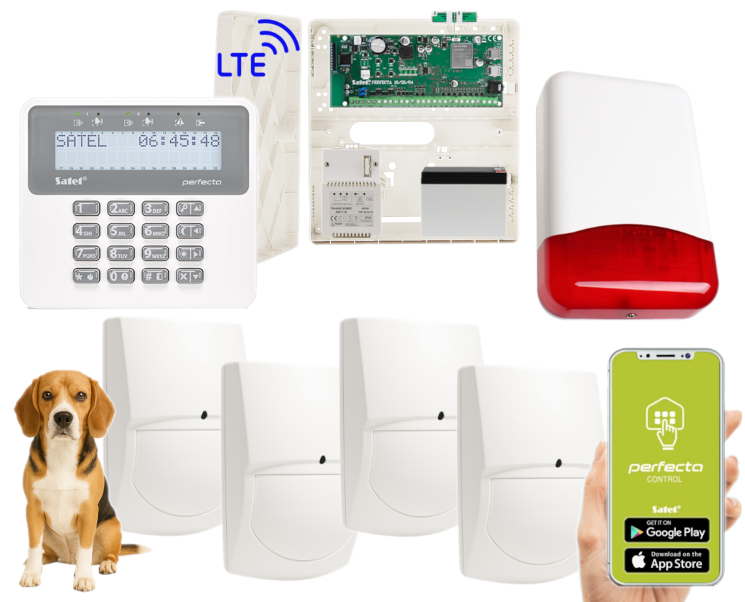 - 1x centrala alarmowa Satel Perfecta 16 LTE wraz z akcesoriami;