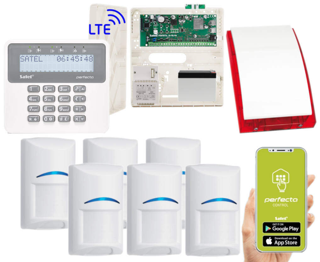 - 1x centrala alarmowa Satel Perfecta 16 LTE wraz z akcesoriami;