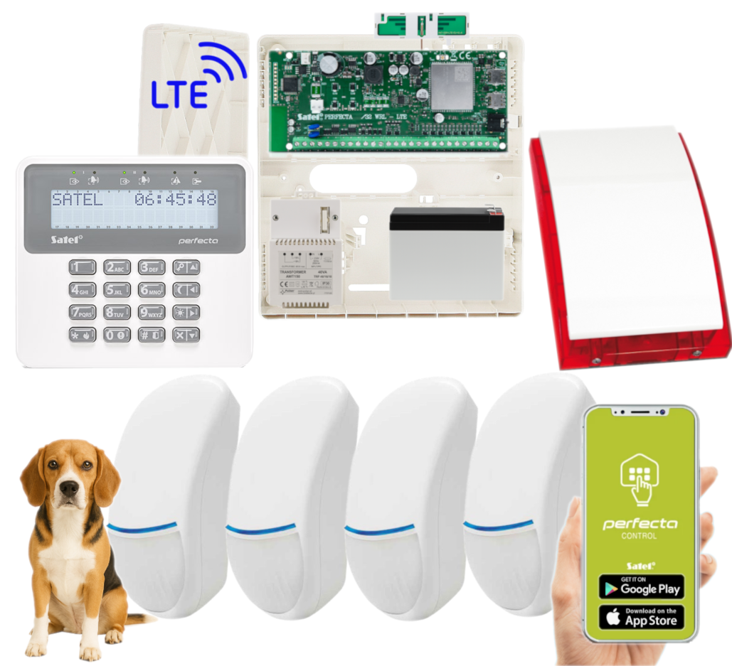 - 1x centrala alarmowa Satel Perfecta 32 LTE wraz z akcesoriami;