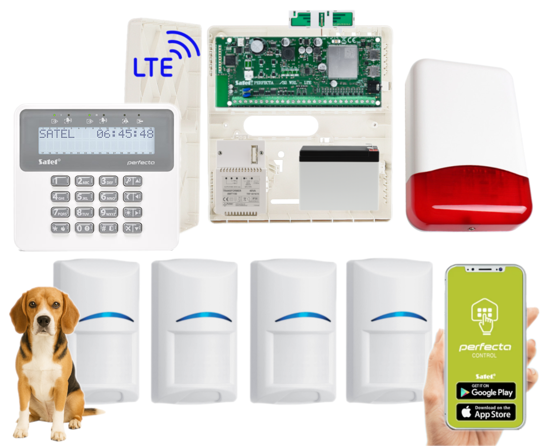 - 1x centrala alarmowa Satel Perfecta 32 LTE wraz z akcesoriami;