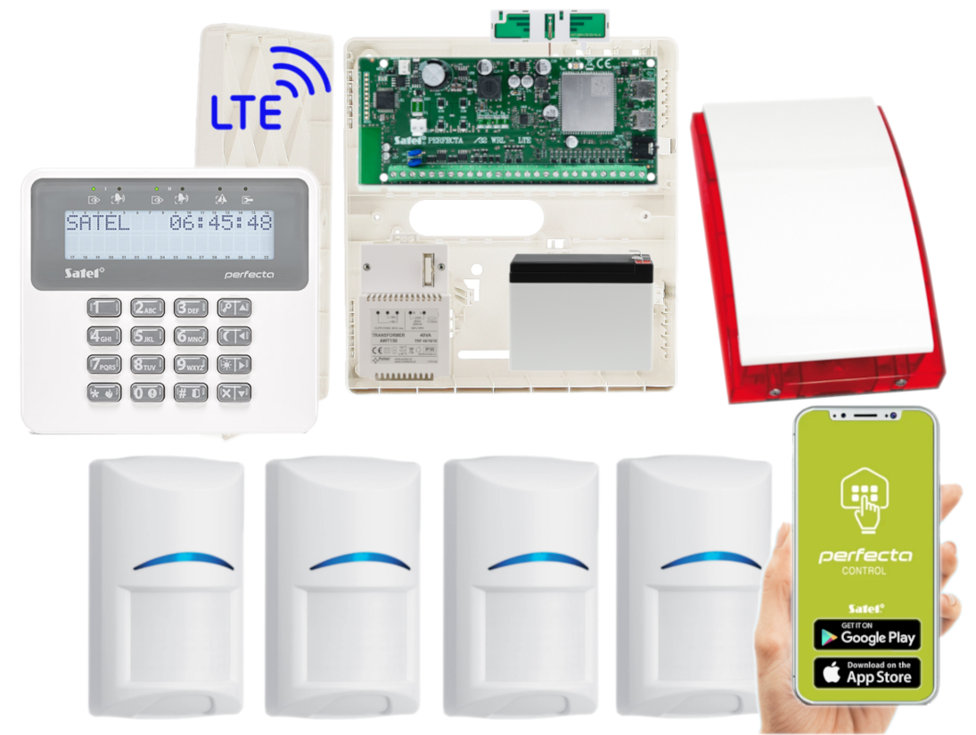 - 1x centrala alarmowa Satel Perfecta 32 LTE wraz z akcesoriami;