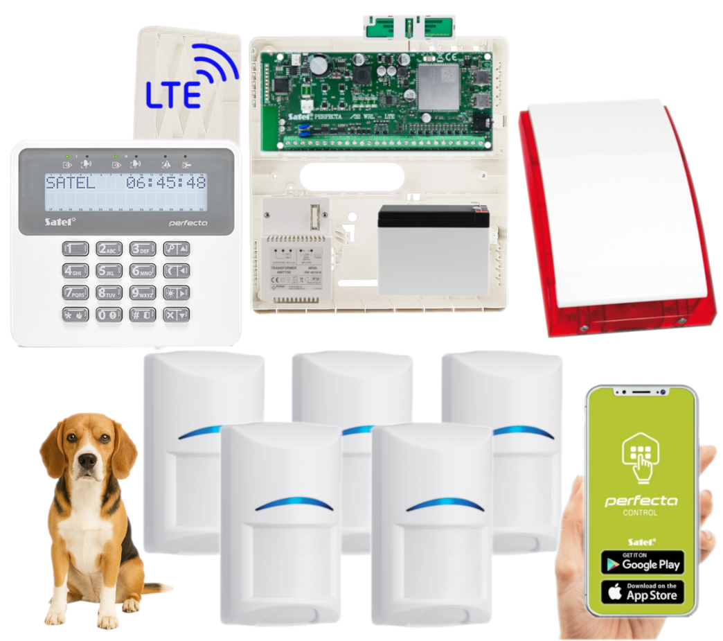 - 1x centrala alarmowa Satel Perfecta 32 LTE wraz z akcesoriami;