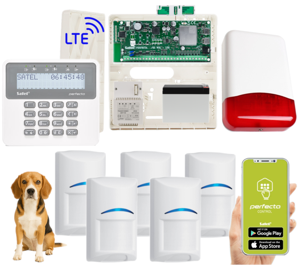 - 1x centrala alarmowa Satel Perfecta 32 LTE wraz z akcesoriami;
