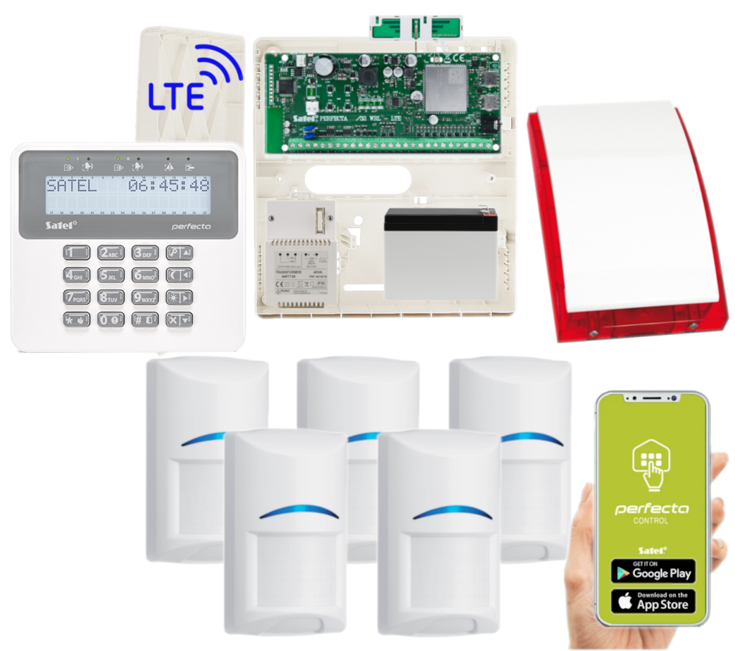 - 1x centrala alarmowa Satel Perfecta 32 LTE wraz z akcesoriami;
